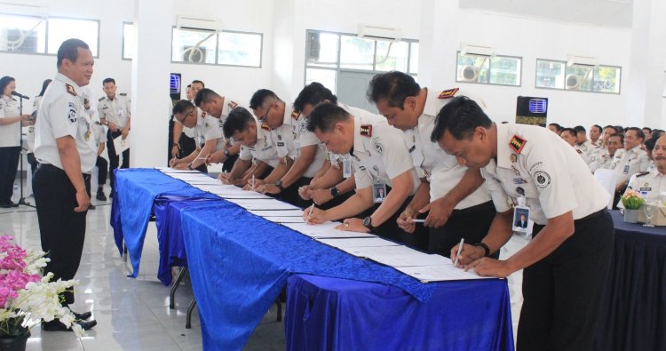 Selanjutnya dilaksanakan penandatanganan Perjanjian Kinerja antara Kepala Kantor Wilayah Ditjenpas Jawa Tengah, Mardi Santoso, dengan seluruh Kepala UPT Pemasyarakatan se-Jawa Tengah. Penandatanganan ini menandai komitmen bersama dalam mewujudkan kinerja organisasi yang terukur, akuntabel, dan berdampak nyata bagi masyarakat.