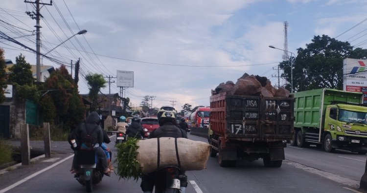 Kabupaten Semarang - Sebuah pemandangan mengerikan tersaji di jalur provinsi Semarang–Solo, tepatnya di Kecamatan Bawen, Kabupaten Semarang, Jawa Tengah, pada Rabu sore (14/1/2025) pukul 16.21 WIB. Di tengah hiruk pikuk arus lalu lintas yang padat saat jam pulang kerja, sebuah truk dump bermuatan batu berukuran besar melintas tanpa penutup muatan. Batu-batu besar itu tampak menjulang tanpa pengaman, seperti terpal atau jaring, menimbulkan ancaman nyata bagi setiap pengendara yang melintas di belakangnya.